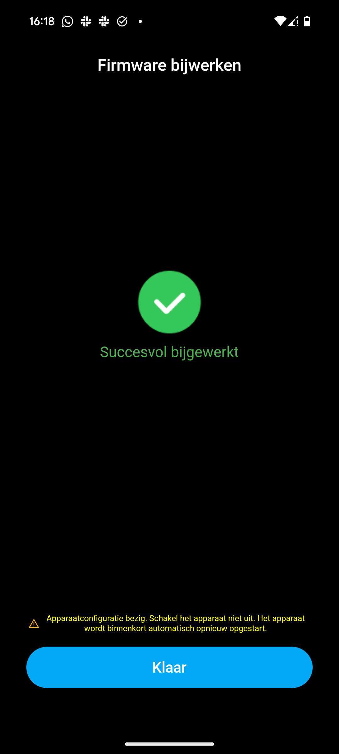 Je krijgt een melding dat er een nieuwe firmware beschikbaar is. Je klikt op Nu bijwerken…. zorg ervoor dat de smartphone tijdens het update proces via bluetooth verbonden blijft met de batterij omvormer.