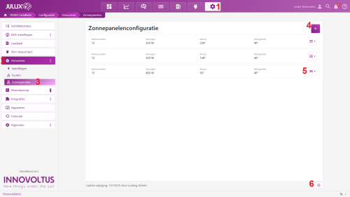 Je kan de zonnepanelen in groepen van gelijke oriëntatie en gelijk vermogen ingeven. Via