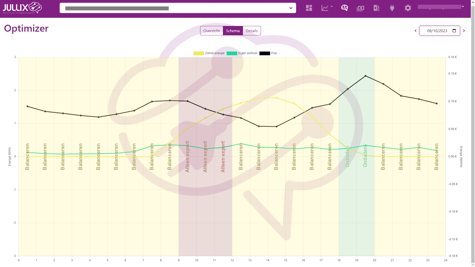 In het geval men een dynamisch energietarief neemt bij de energieleverancier kan men via de optimizer in het Jullix energiemanagement nog een stap verder gaan.