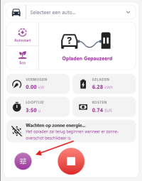 Bij Auto besturen kan je de auto kiezen die geladen moet worden en kies je de laadmodus.