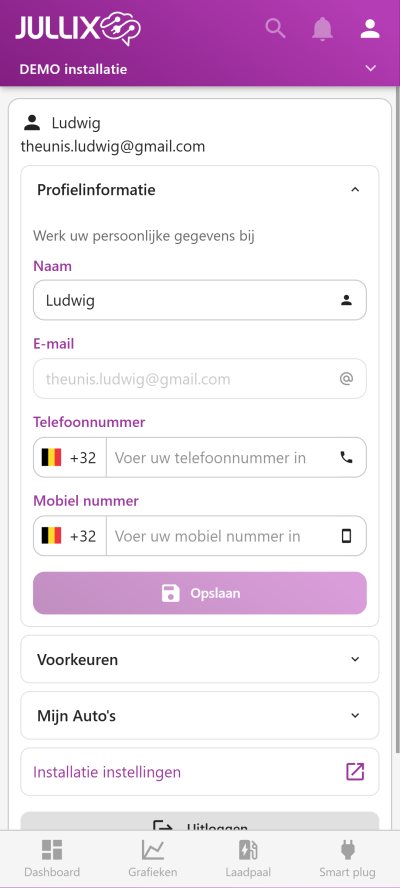 Je bent hier: start » nl » App: myJullix » Profiel instellingen