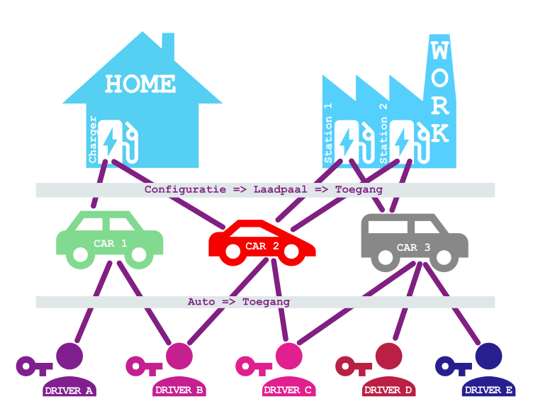 Als gebruiker kan je auto's aanmaken en vervolgens voor die auto's extra gebruikers toegang geven tot het laden van die auto met één of meerdere laadpalen.