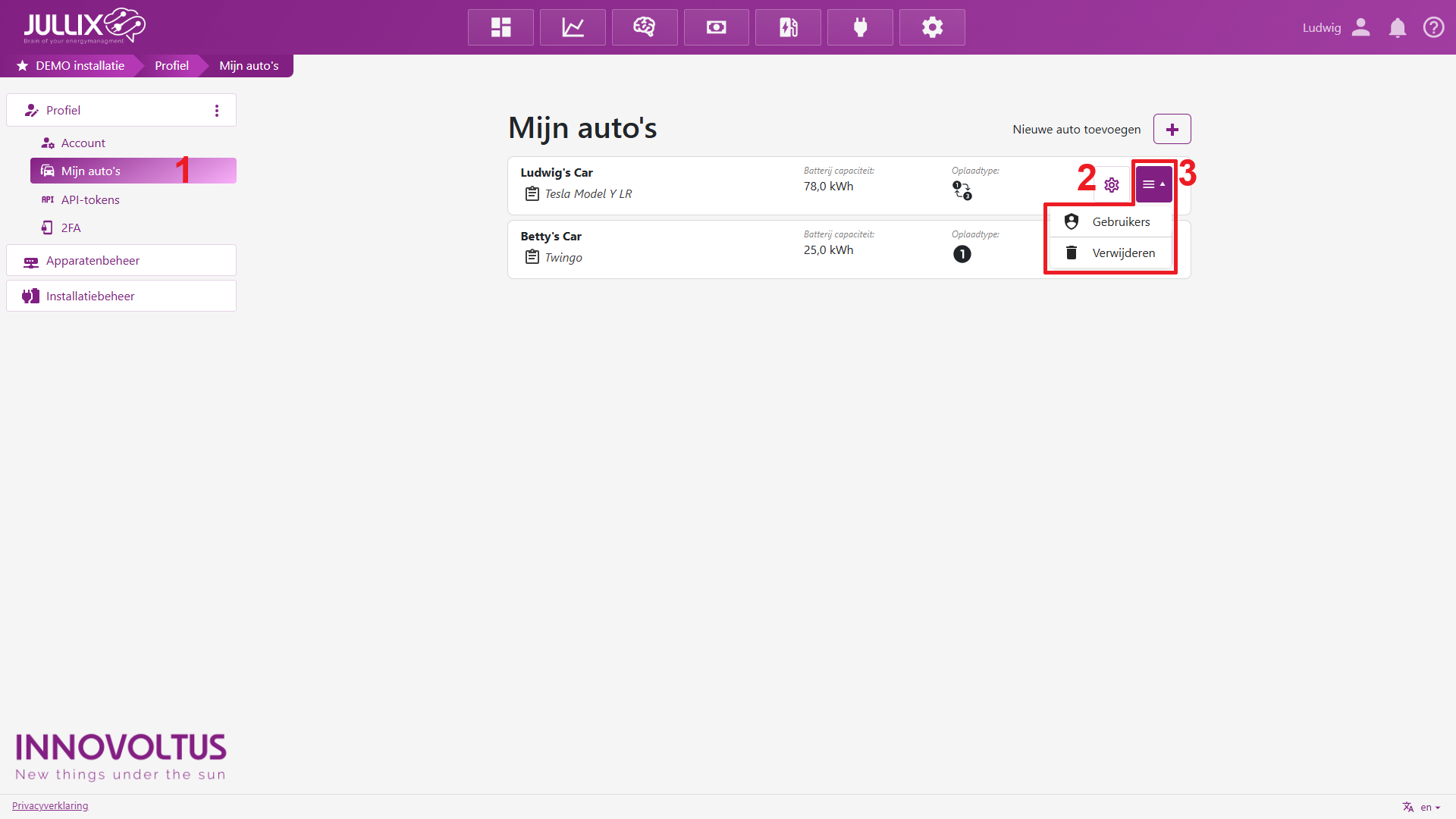 Als gebruiker kan je in je profiel een auto aanmaken. En in een laadpaal kan ingesteld worden welke auto de laadpaal mag gebruiken.