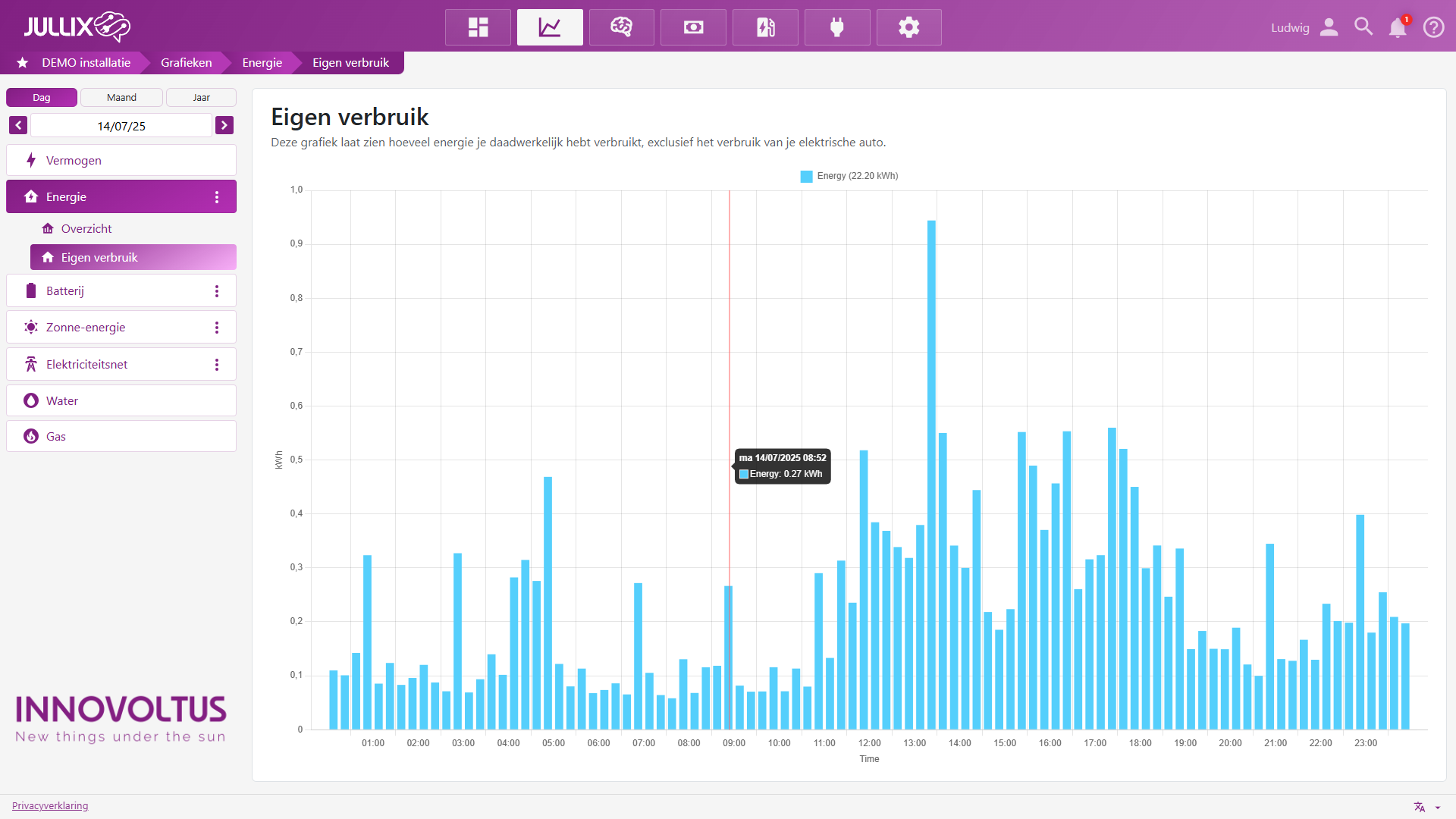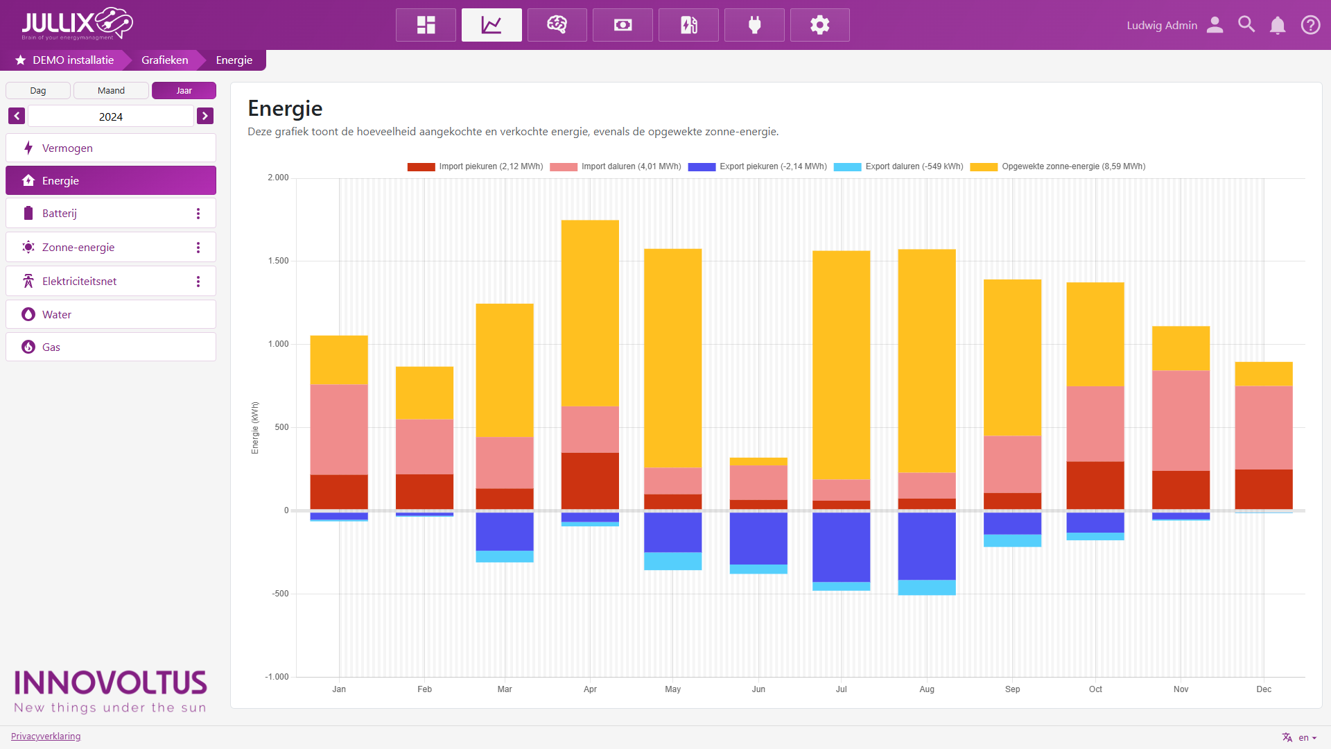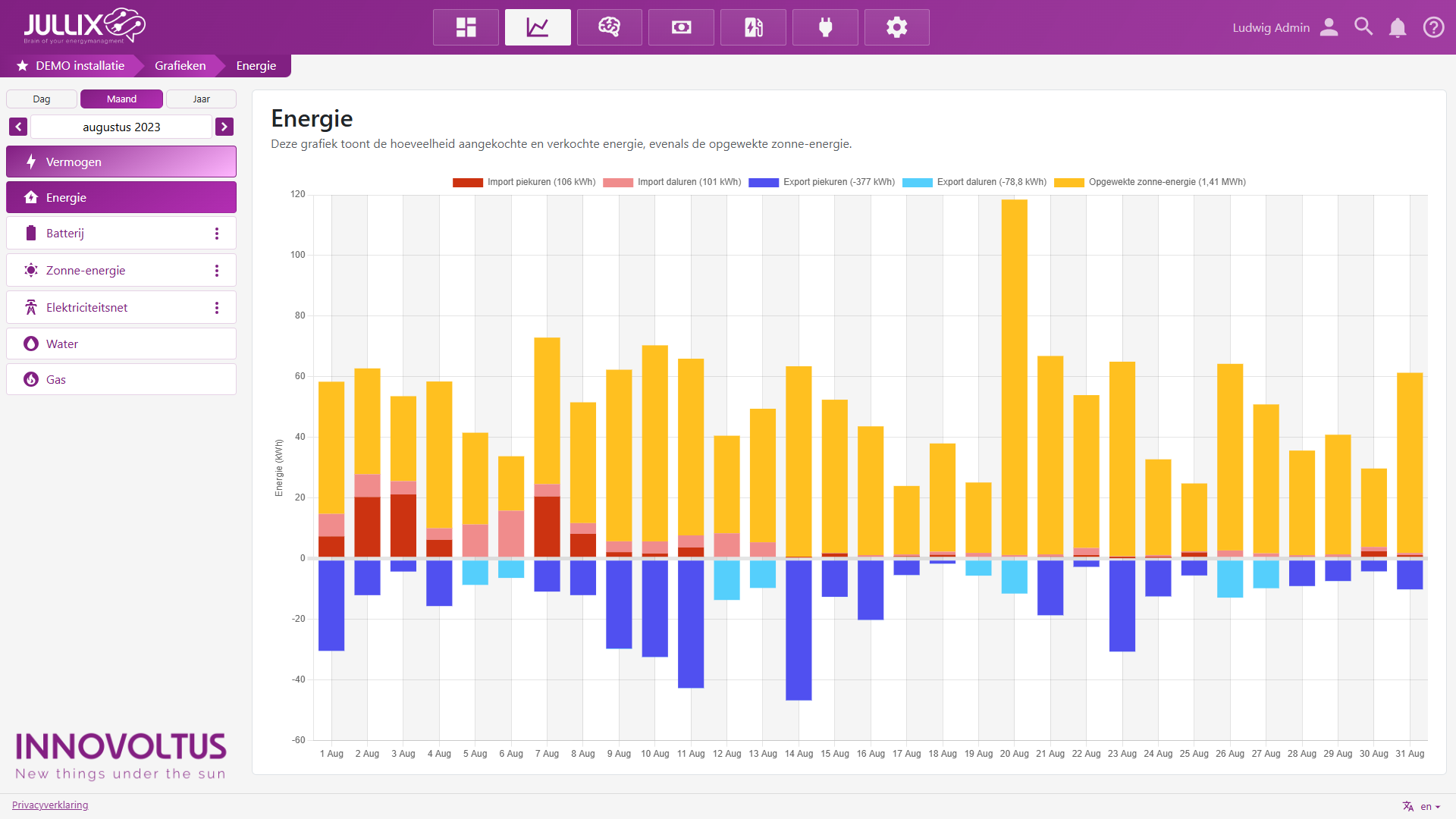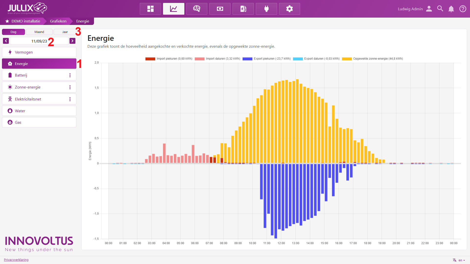 Onder Energie vind je verschillende grafieken (2) van de installatie.