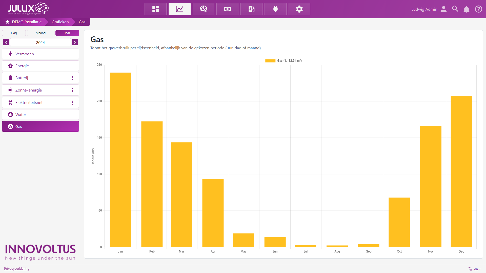 De digitale meter geeft ook de informatie van de digitale gasmeter als die aangesloten is. Als de info van de digitale gasmeter beschikbaar is in de digitale meter van Fluvius, zal Jullix deze data ook weergeven op het platform.