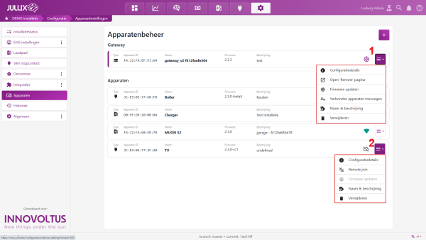Bij ieder apparaat vind je achteraan een menu waar je een aantal dingen kan aanpassen.